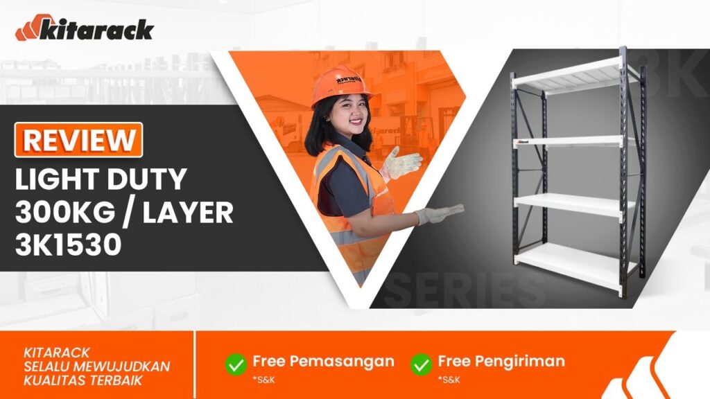 Light Duty Rack 3K adalah solusi penyimpanan yang kuat dan multifungsi, ideal untuk menyimpan barang dengan beban ringan hingga sedang. Rak ini dilengkapi dengan berbagai aksesoris tambahan, termasuk floor mat untuk melindungi lantai dari goresan, top cover untuk menutupi bagian atas rak, serta safety pin yang menjaga agar beam tetap stabil dan tidak bergeser. Dengan kapasitas hingga 300 kg per layer, rak ini dapat menampung barang dengan berbagai ukuran. Desainnya yang fleksibel menjadikannya pilihan tepat untuk kebutuhan penyimpanan di rumah, kantor, atau gudang. Light Duty Rack 3K memberikan kenyamanan dan keamanan dalam pengorganisasian ruang penyimpanan Anda